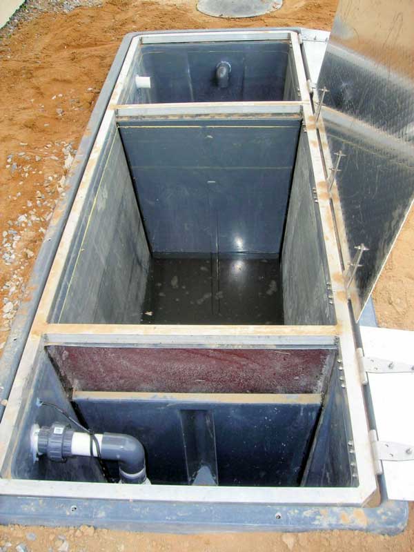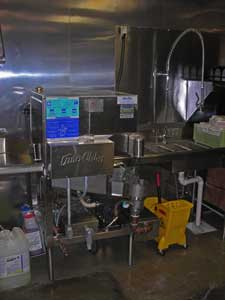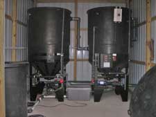 Final Stage: wash water is routed from the seprator to these tanks, where oil is held on site for proper disposal or heating purposes, and polished water is sent to a sanitary sewer. [click image to enlarge]